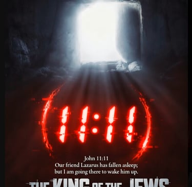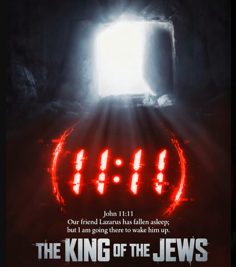 A striking print of the King of the Jews movie poster featuring the iconic 11:11 red LED clock glowing vividly.